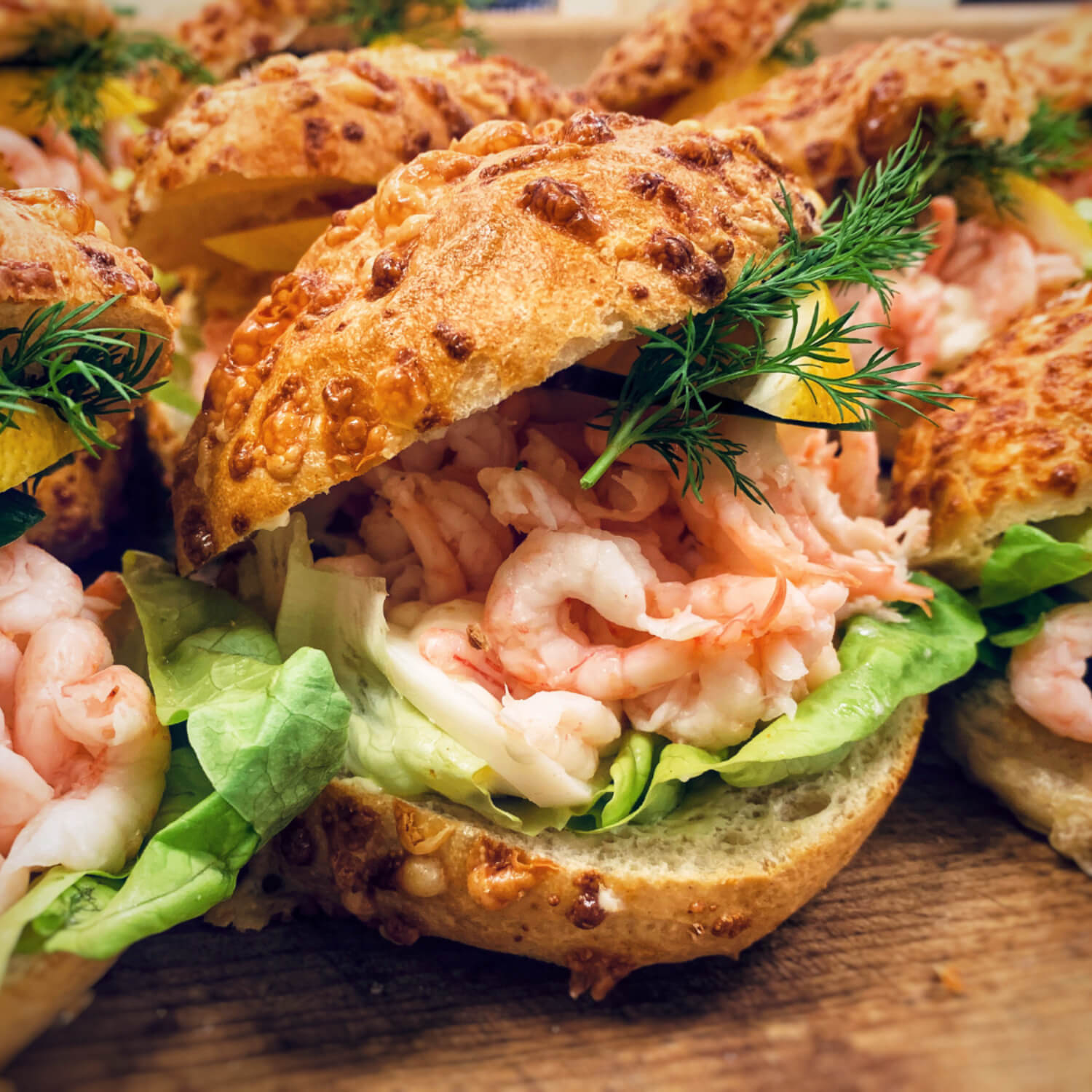 Även denna görs på vår goda ostfralla men såklart i ett större format, handskalade räkor och lokal producerade ägg och lagom mycket majonnäs. Riktigt god! ;)